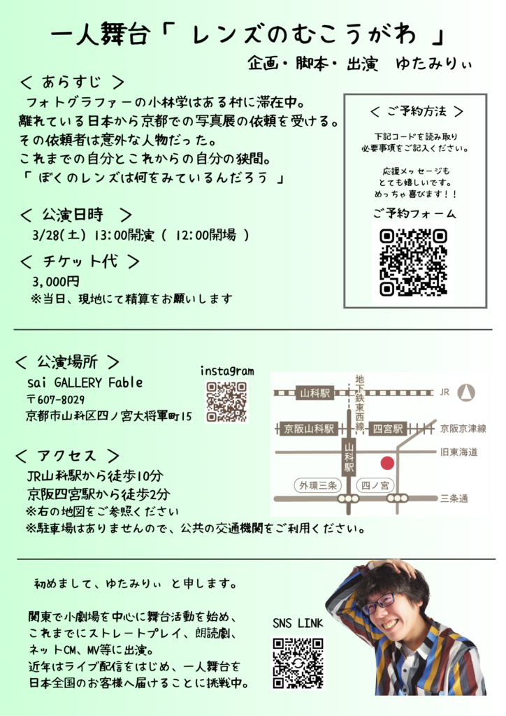 そして今回も「sai GALLERY Fable」さんからお届けいたします。とてもくつろげる大好きな空間で舞台をお届けできるのは嬉しい限りです。