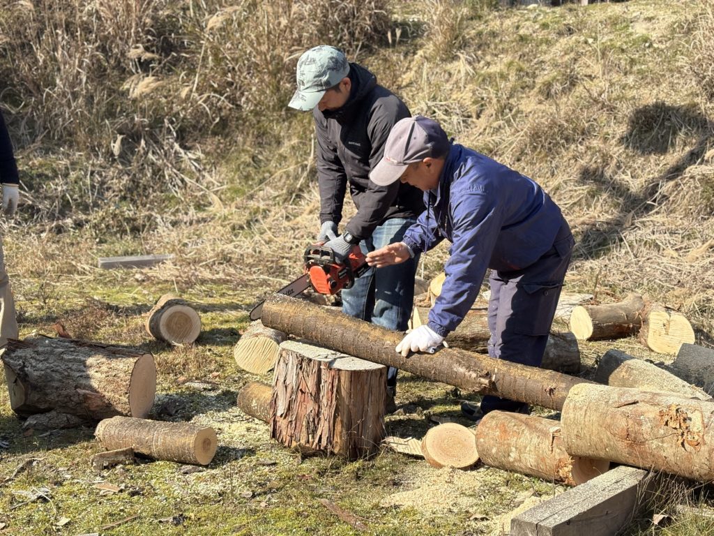 チェーンソーの使い方も教えていただきました。