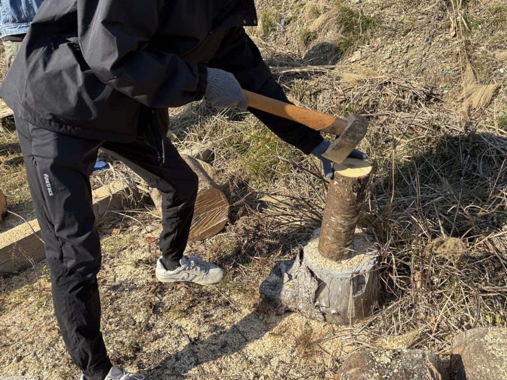 次は薪割りに挑戦。