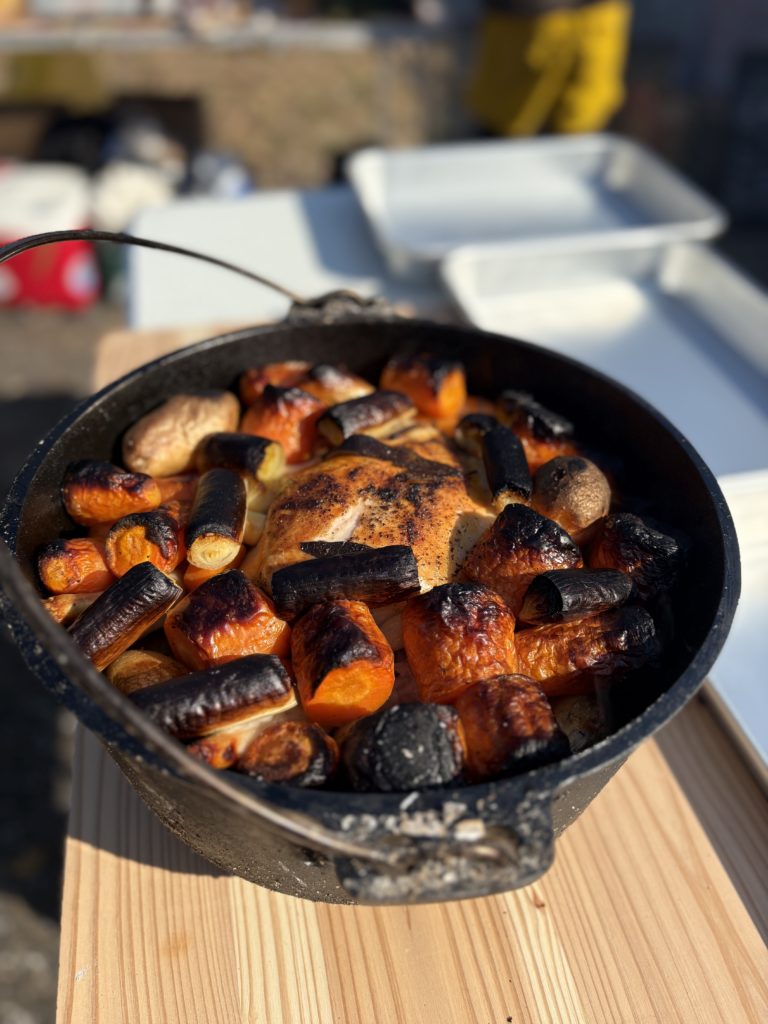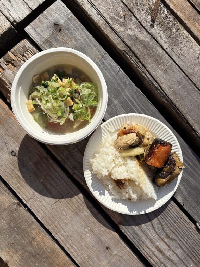 豚汁、ローストチキン、釜炊きご飯を用意しました。