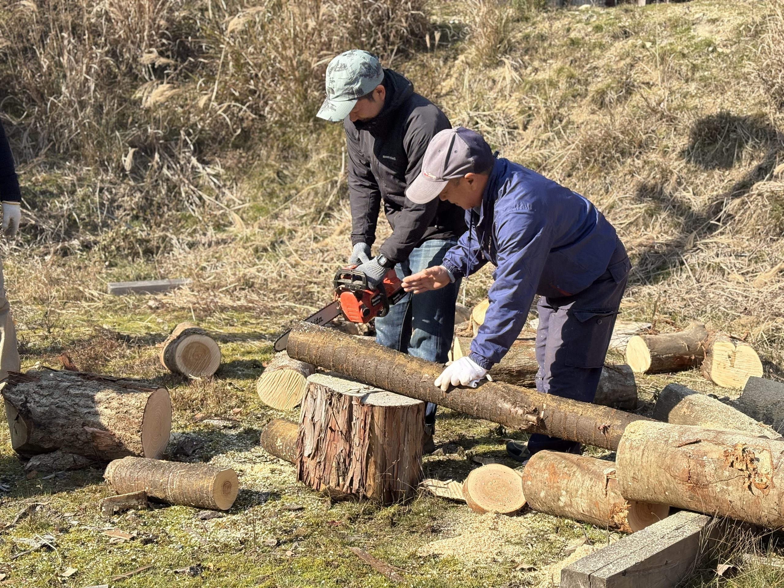 チェーンソーの使い方も教えていただきました。