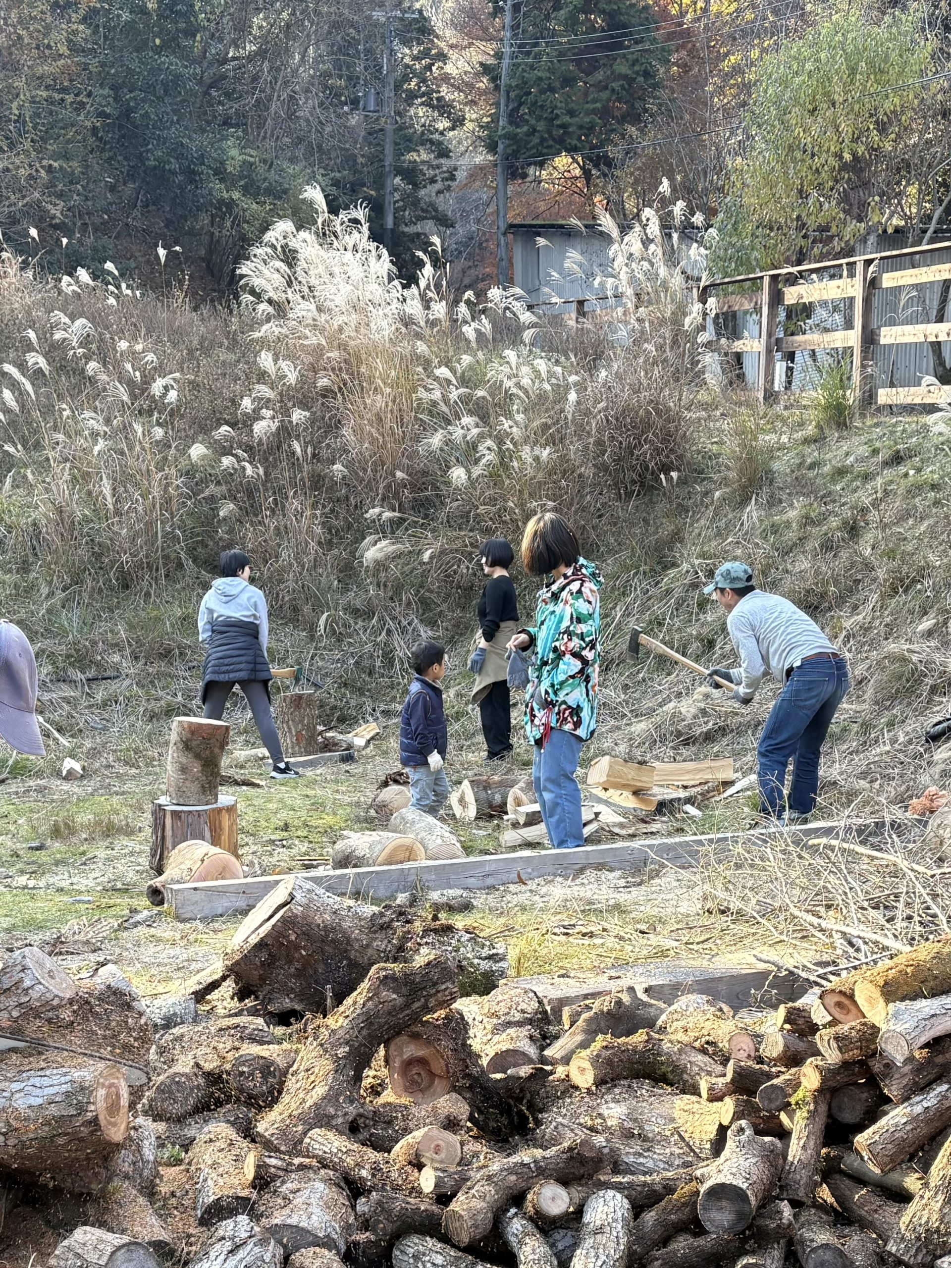 みんなで割った薪は、