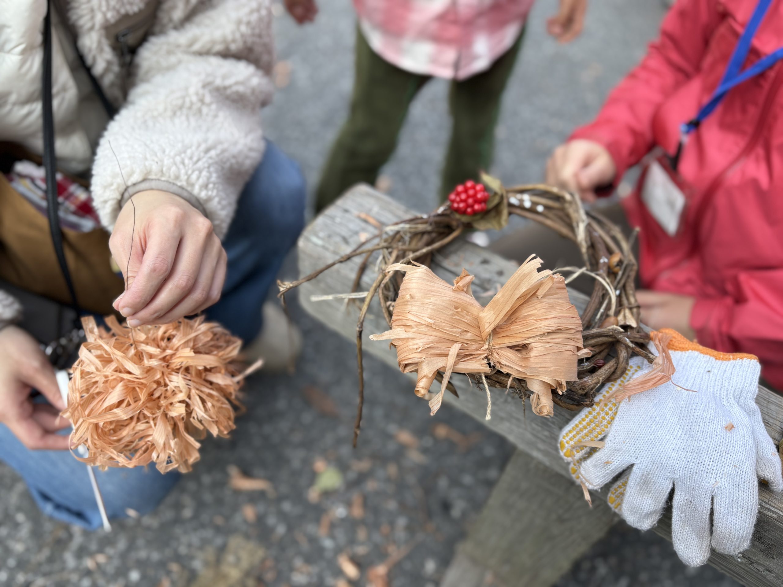 ちょうどクリスマス前のため、リース作りも楽しみました。